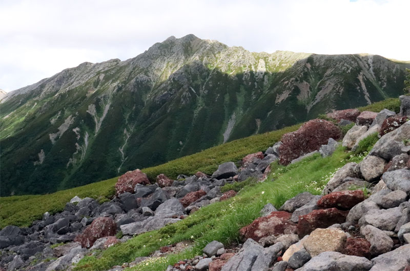 水晶小屋から野口五郎岳への縦走路。翌日は雨で断念