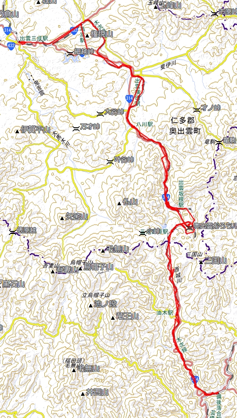 トンネルが多く電波の遮断が頻発したが、山旅ロガーのトレース図はかなり正確だった。