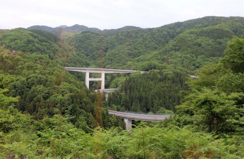 ループ橋付近は行きが車道、帰りが鉄道と分かれた。