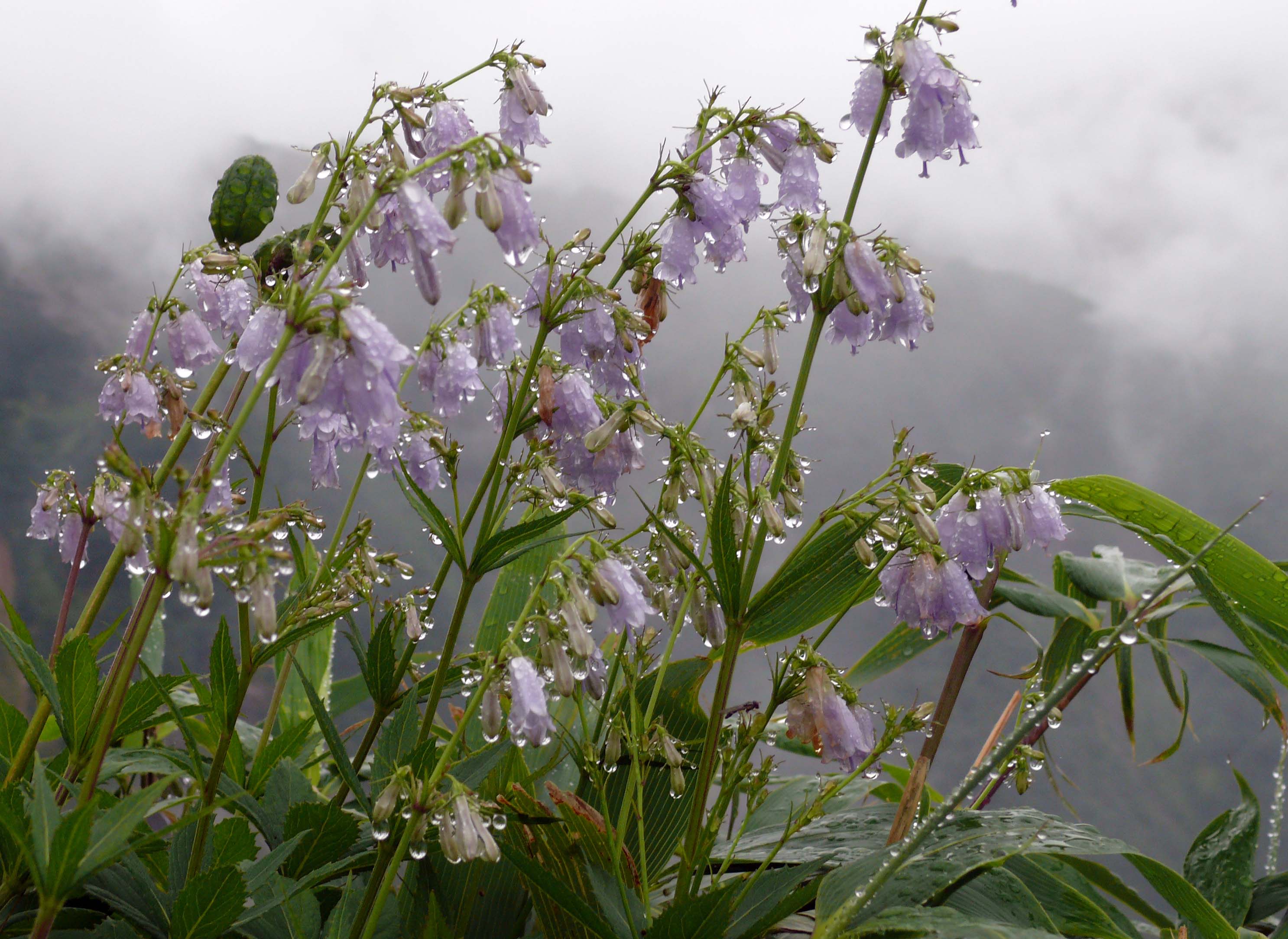 サンカヨウは雨でクリスタルになる 擬宝珠山