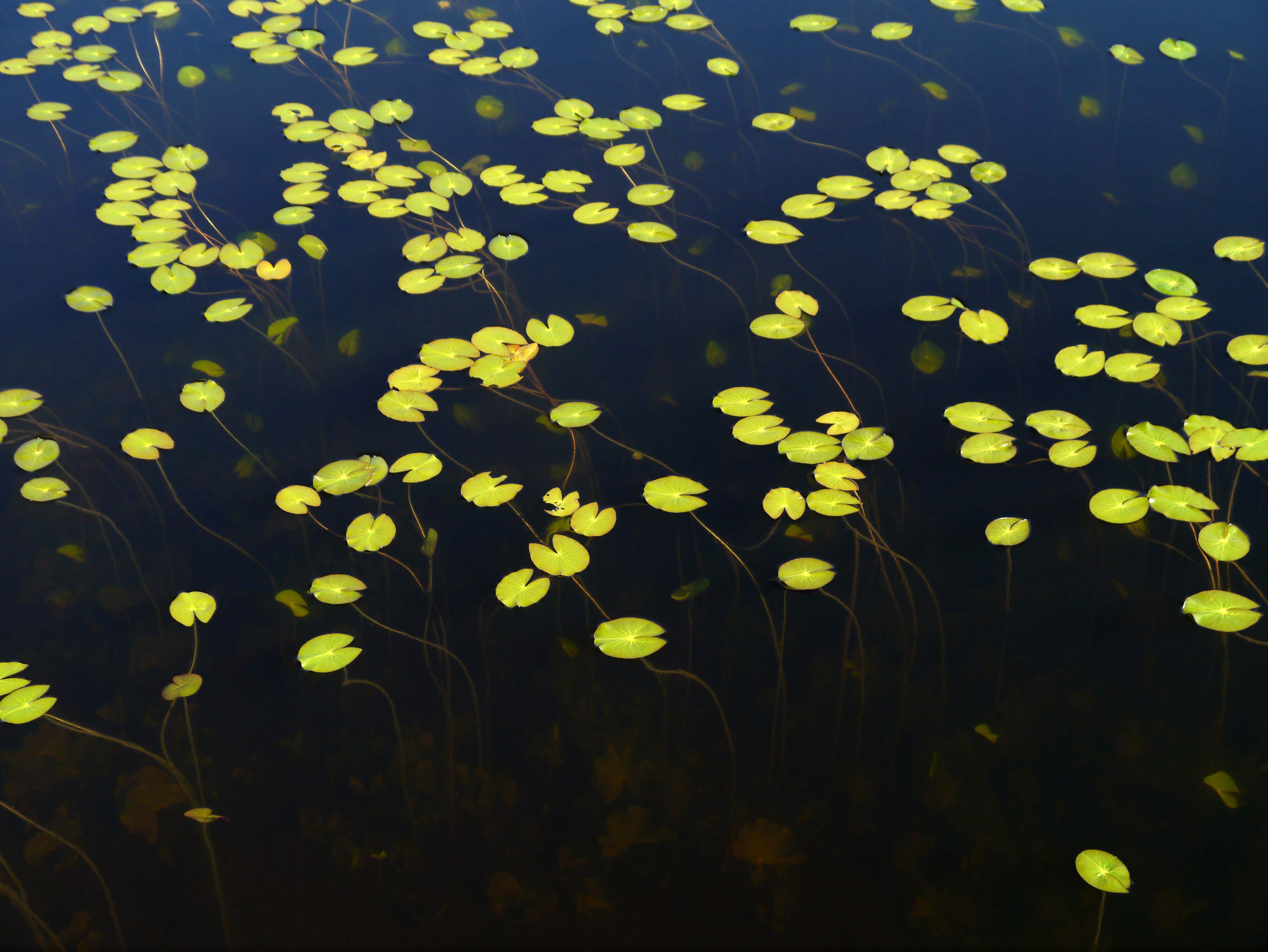池塘に浮かぶヒツジグサ 2014年10月 尾瀬