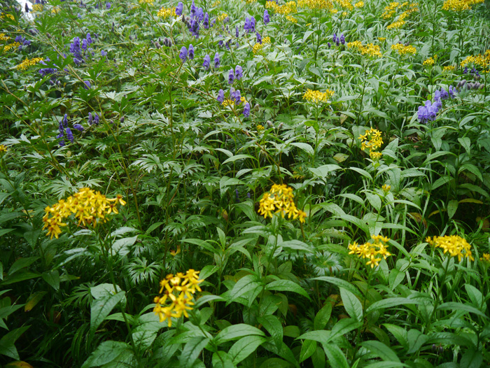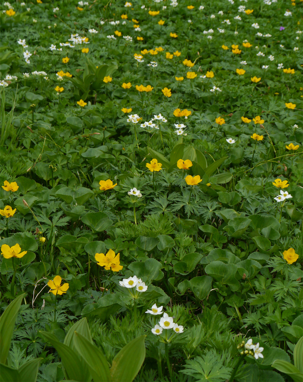 一面に続くお花畑はシナノキンバイとハクサンイチゲ 2014年8月初旬 雪倉岳