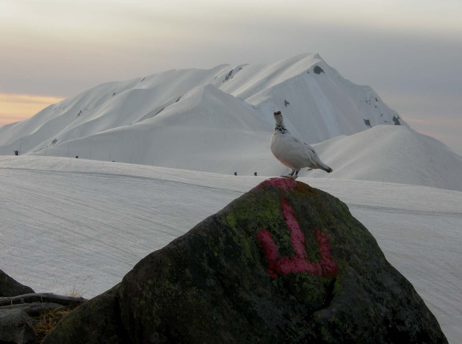 山印のライチョウ 2006年5月 立山:背後は奥大日岳