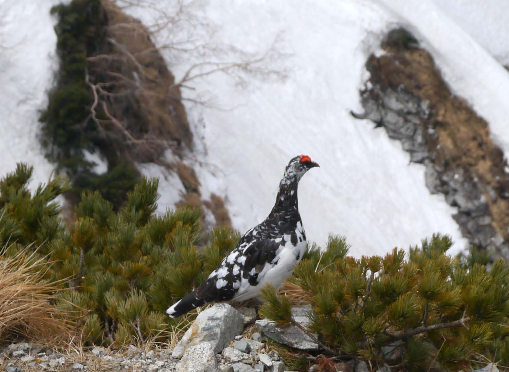 赤い鶏冠のライチョウ 2015年5月 奥大日岳山頂
