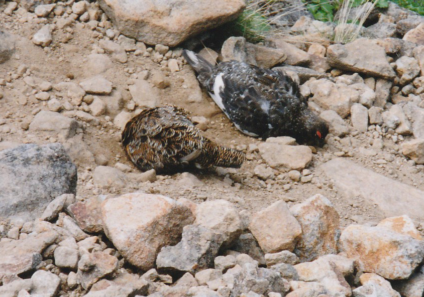 砂風呂中のライチョウの雄と雌 2017年8月 小蓮華山