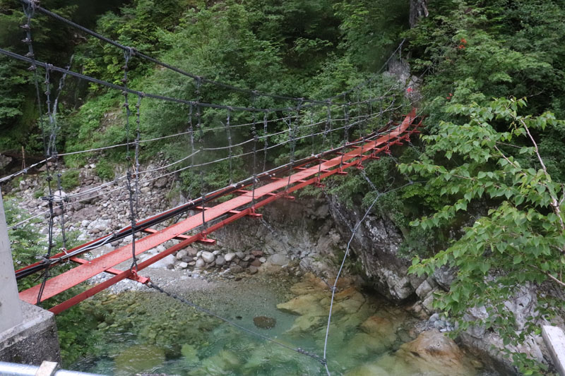 翌朝吊り橋を渡り雲ノ平への急坂に取り付く