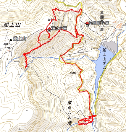 正面登山口→正面登山道→横手道→雌滝→雄滝→横手道→直登コース→船上山→一般登山道→正面登山口