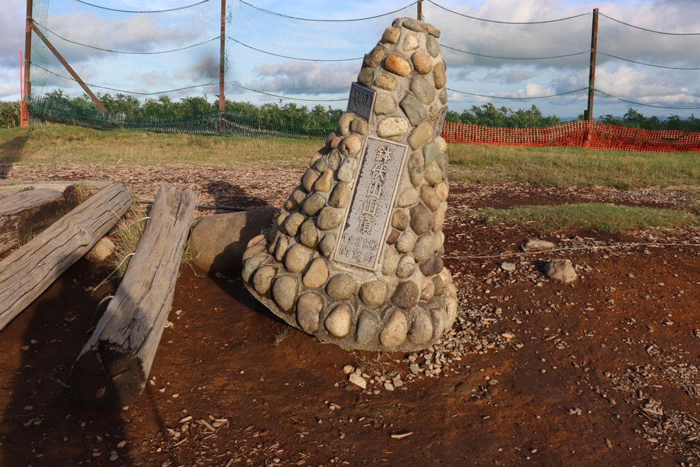 山頂の標識はその頃のままで傾いて立っていた。正面に聳える氷ノ山の姿は変わらない。