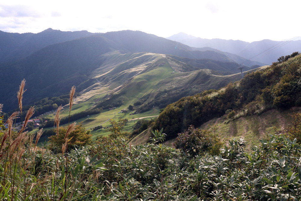 ハチ高原を見下ろして。氷ノ山山頂は雲の中