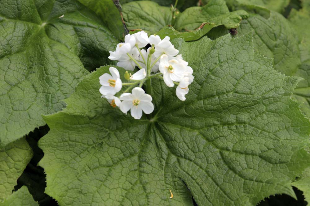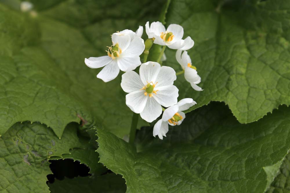 擬宝珠山(ギボシヤマ)はサンカヨウの宝庫だった。烏ケ山の背景が冴える。
