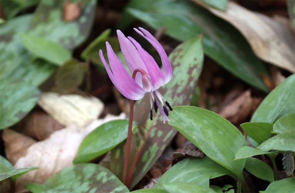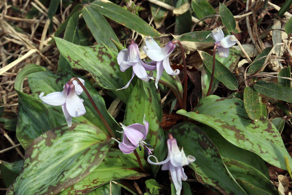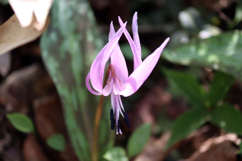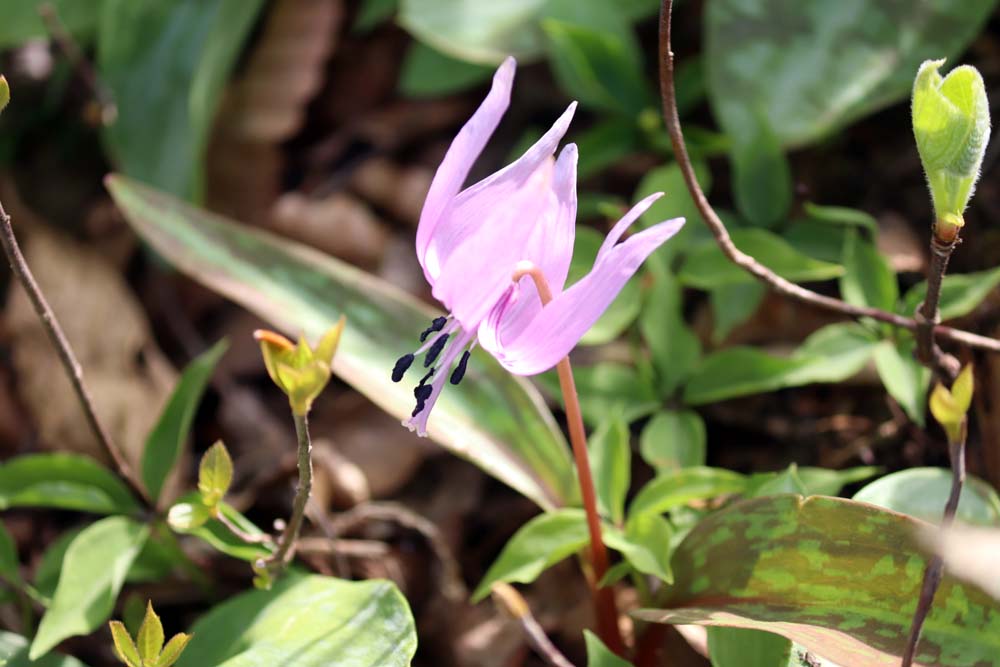カタクリは登山道に延々と続き、撮影に夢中で時間を忘れた。たくさんの妖精に出会った。