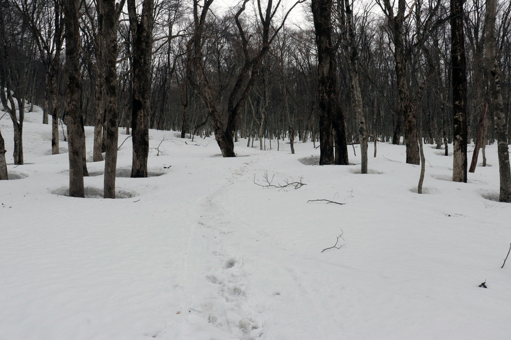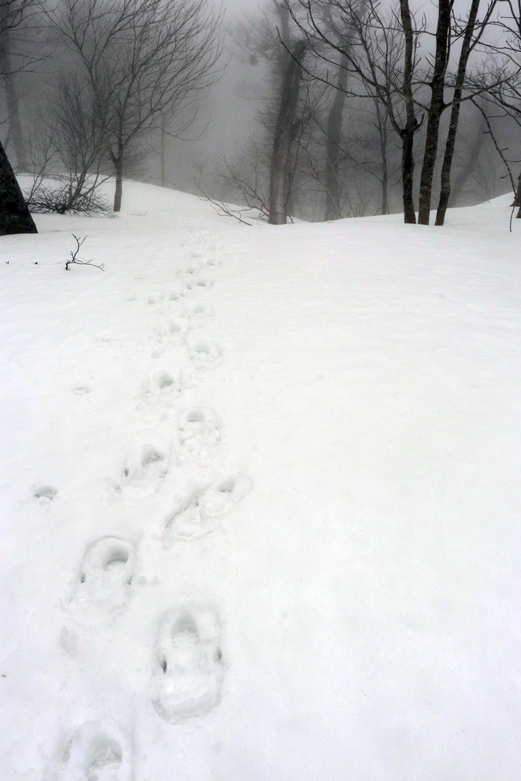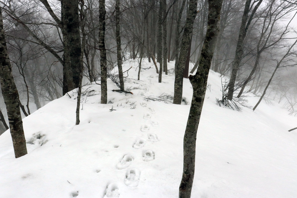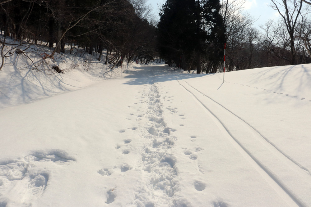 好天の日だったが出会った登山者は1名のみだった。東側は鍵掛峠まで除雪されているようだ。