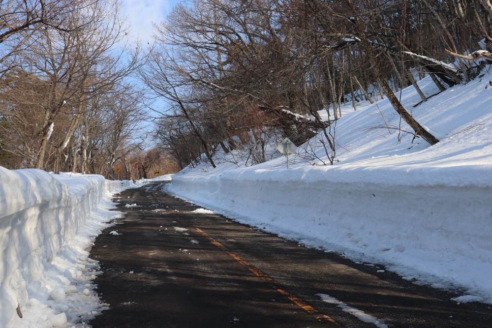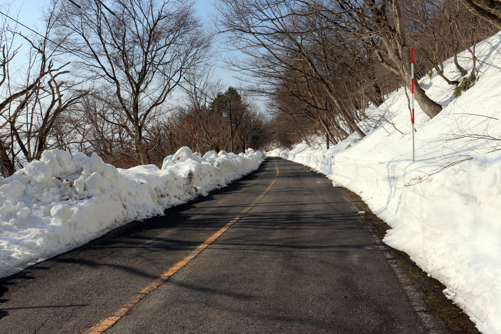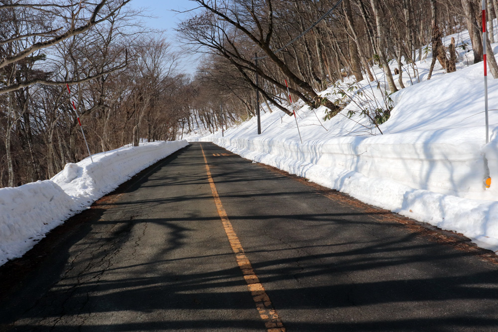 一ノ沢から除雪道に戻ったが足が疲れ、ゴールの桝水高原が遠かった。