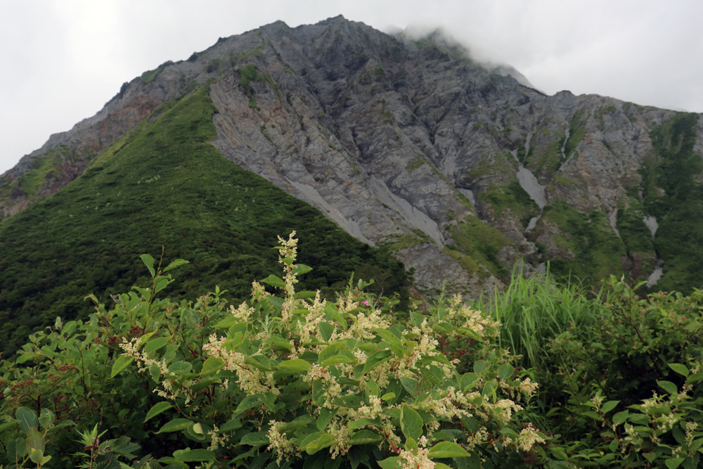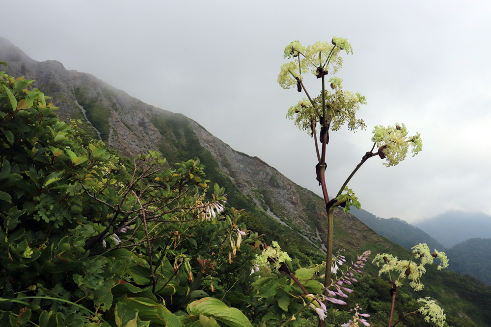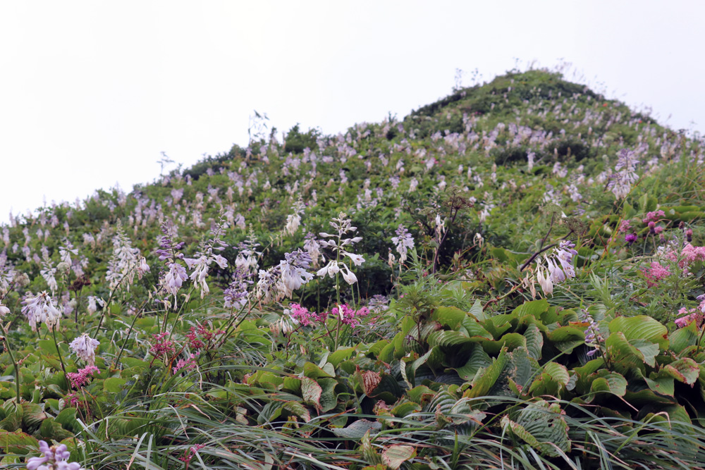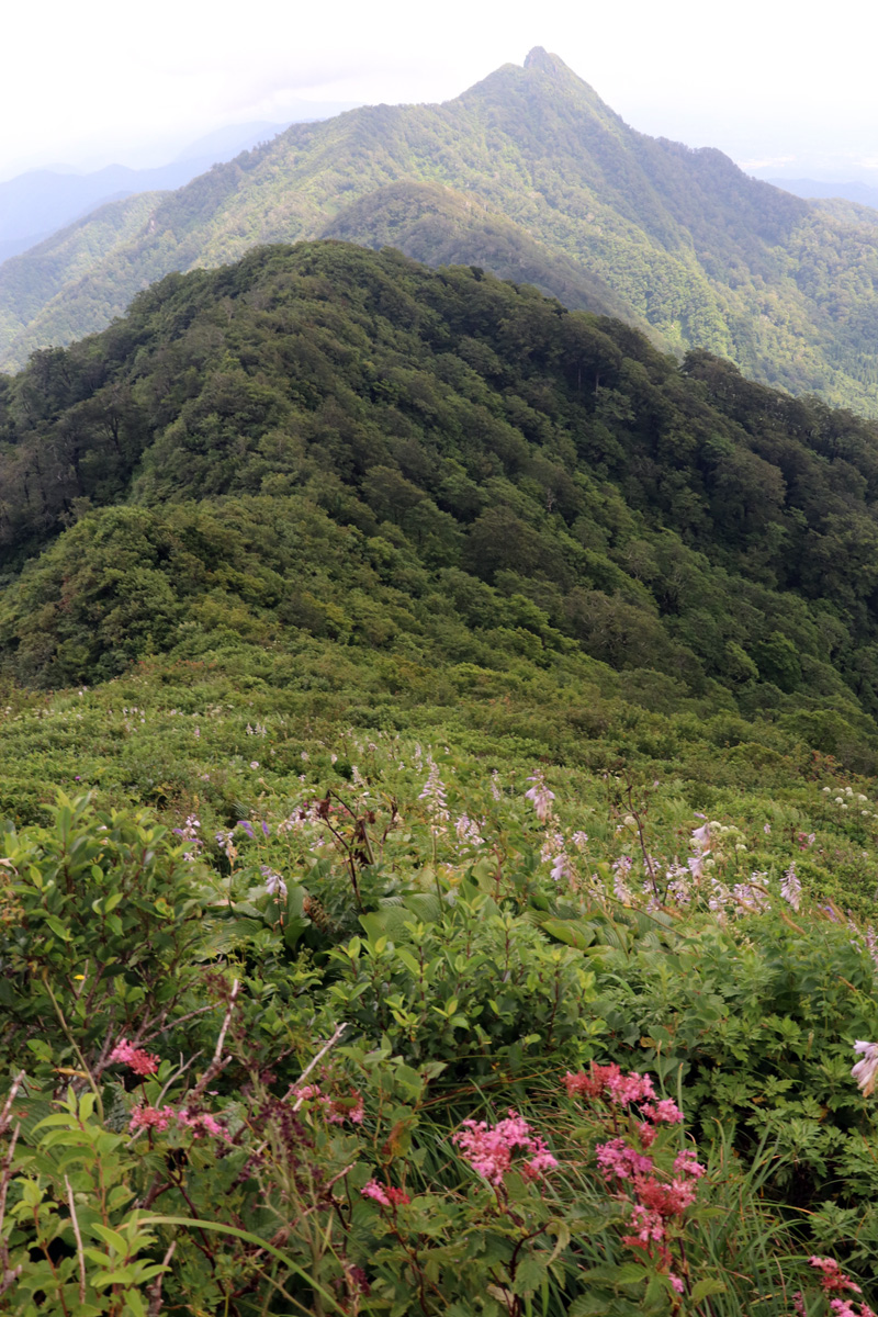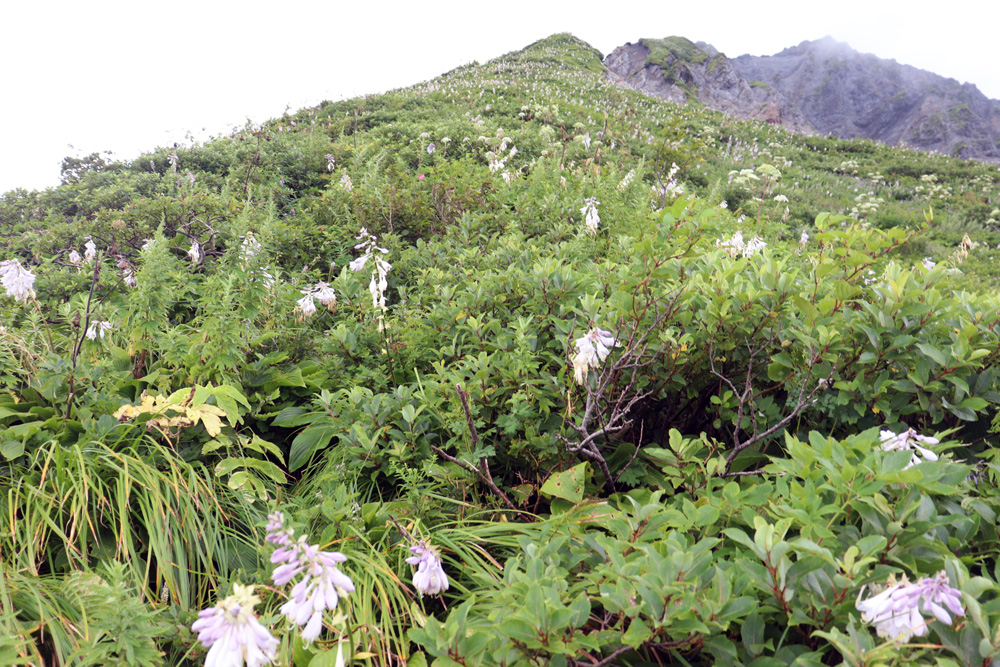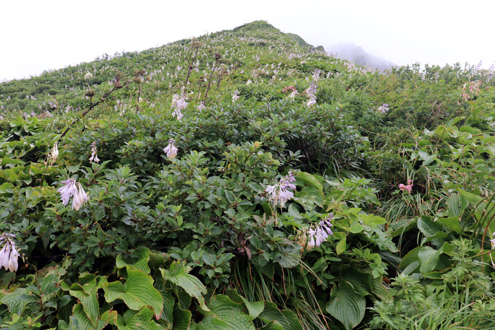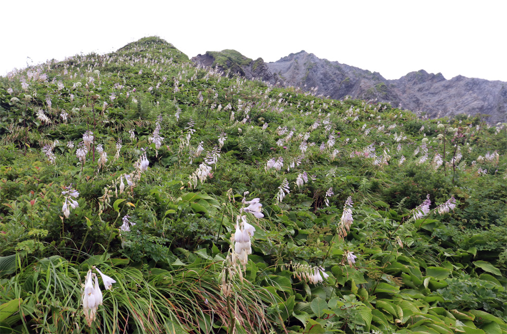 槍ケ峰に向けて延々と続く花畑、振り返ると花畑の奥に烏ケ山。見事な風景だった。