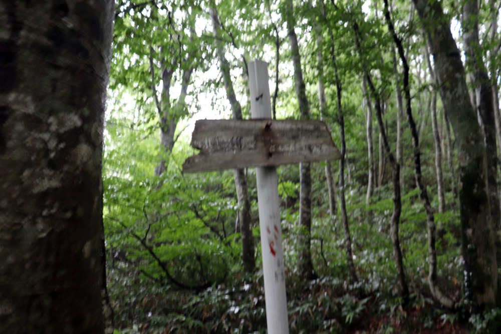 道はやぶ漕ぎの連続で岐路の文殊越に下る道は見えずあきらめて元の道を戻った。