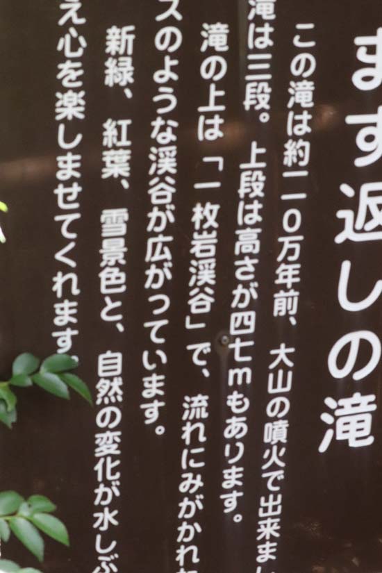鱒返しの滝橋起点の船上山滝巡りコース。途中鱒返しの滝展望台と一枚岩渓谷へ寄り道した。