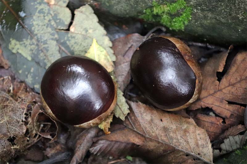 縦走路はヤブ漕ぎに苦戦。トチノキの実がたくさん、ホッとする