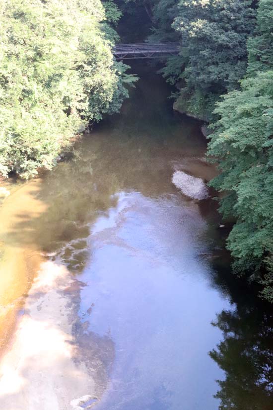 ”舌震の恋吊り橋”から見下ろす下流の玉日女橋