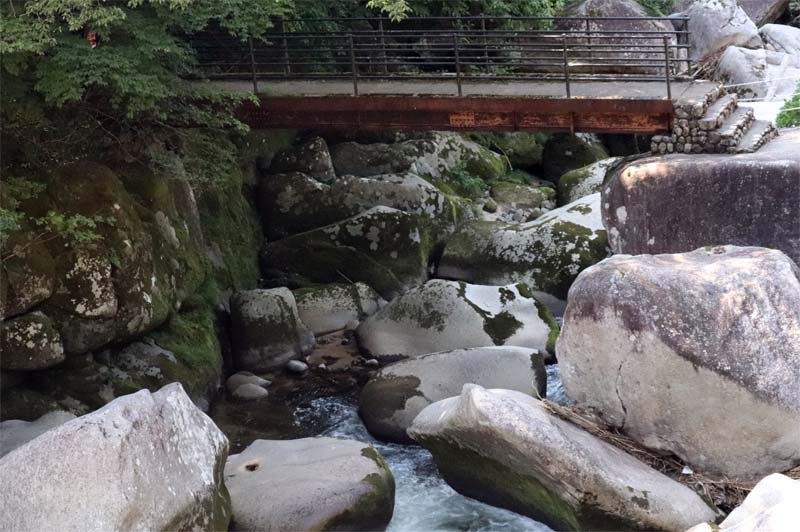 帰路は旧道の上に新しくできたバリアフリー道から長大な舌震の恋吊り橋まで歩き、新しい景色を楽しめた。