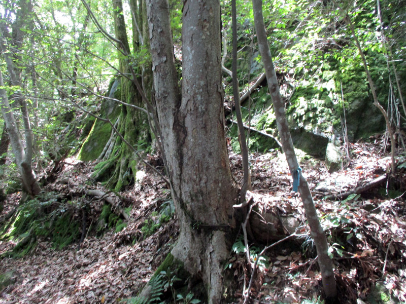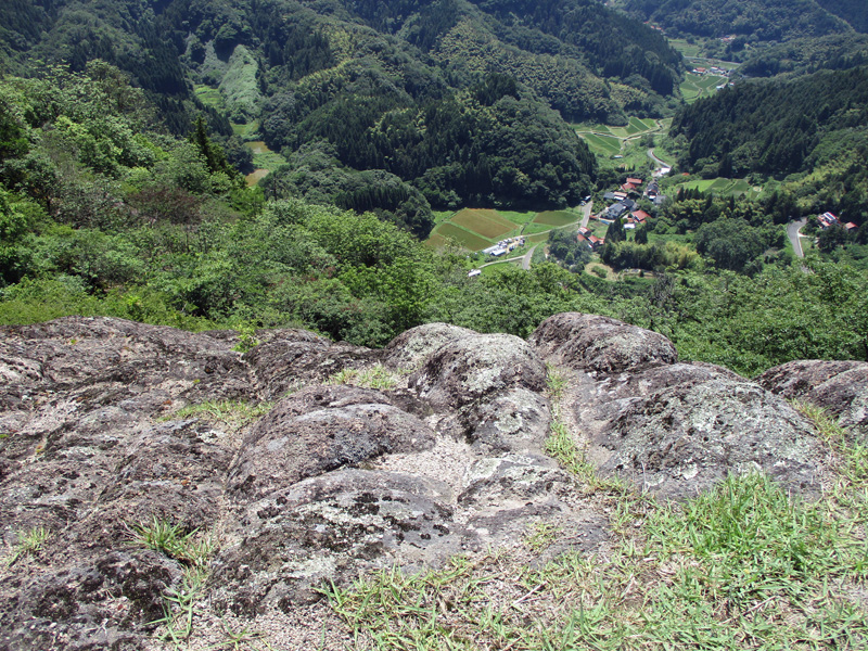 西の岩場から見下ろす大袋山登山口