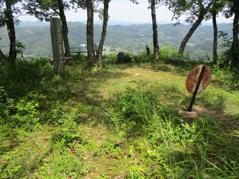 戸倉要害山の山頂。ベンチが3つある