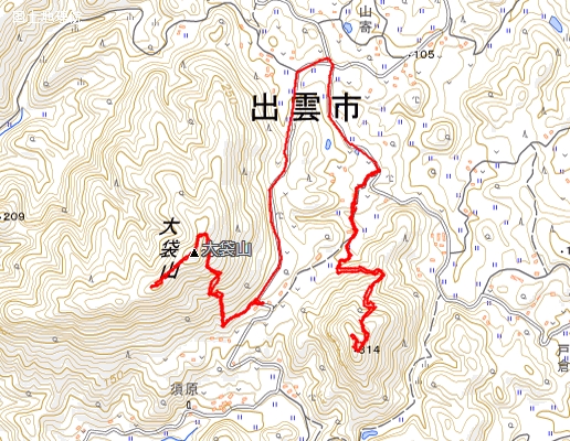 自宅8:00=大袋山登山口9:40−大袋山10:25/10:40−大袋山登山口11:20=