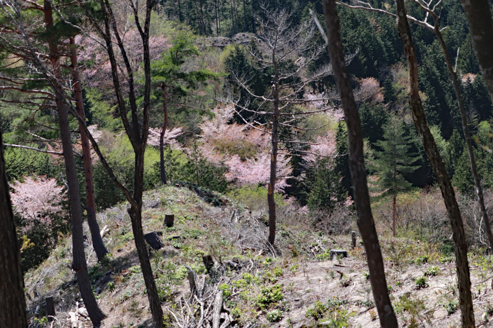 谷から尾根へ。ヤマザクラの咲く季節だ
