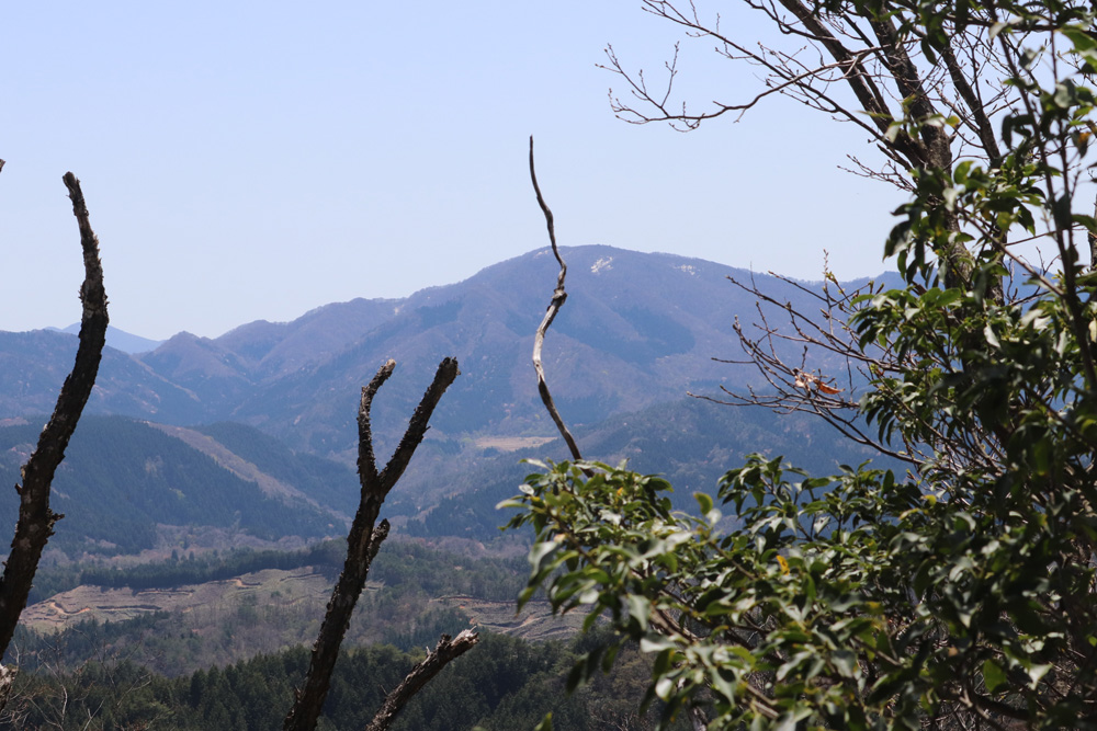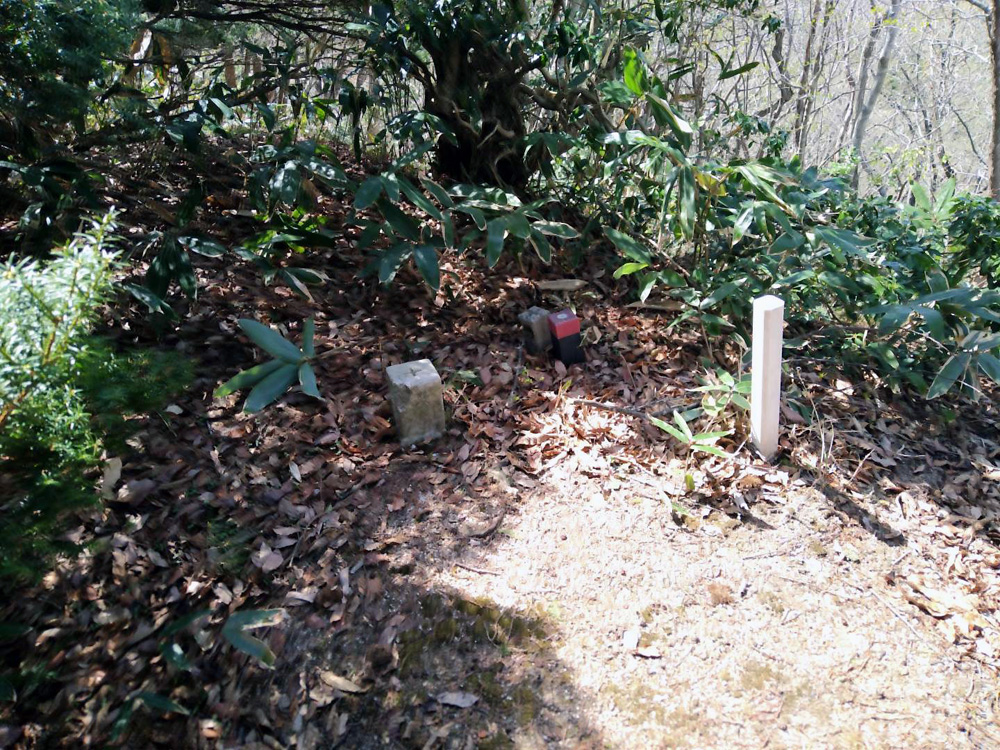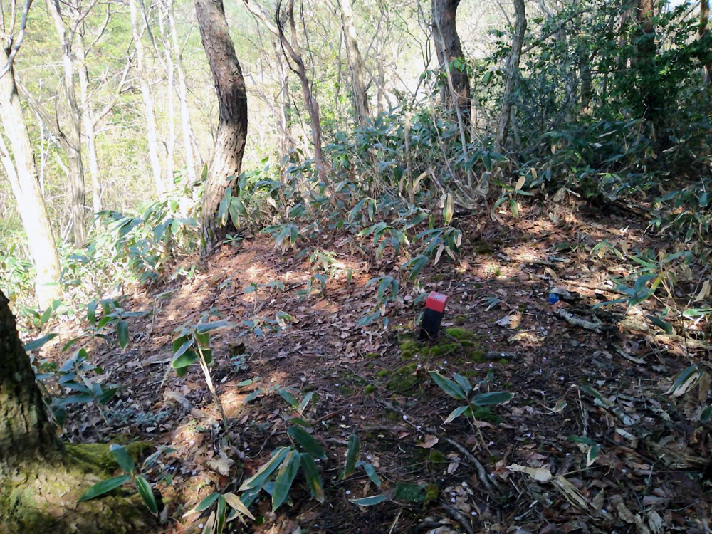 谷沿いに登り尾根へ。進むとすぐに三角点だったが何も標識なし。そこが御墓山(738m)だった。