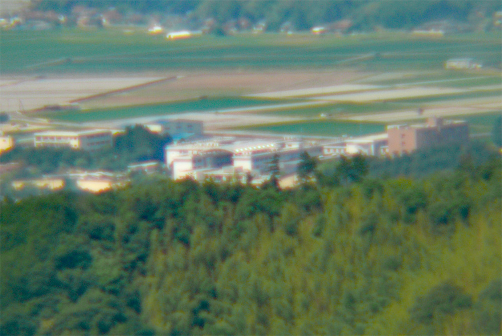 望遠レンズで覗くと教鞭をとった校舎が見える