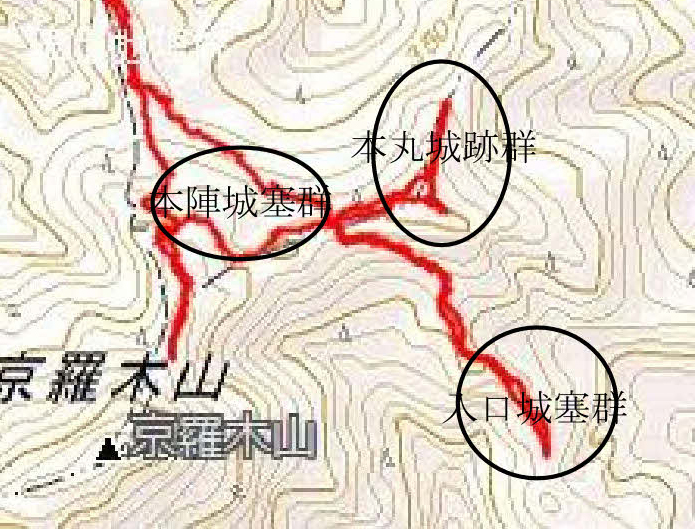 「本丸城跡群」、「入口城塞群」、「本陣城塞群」と仮称した