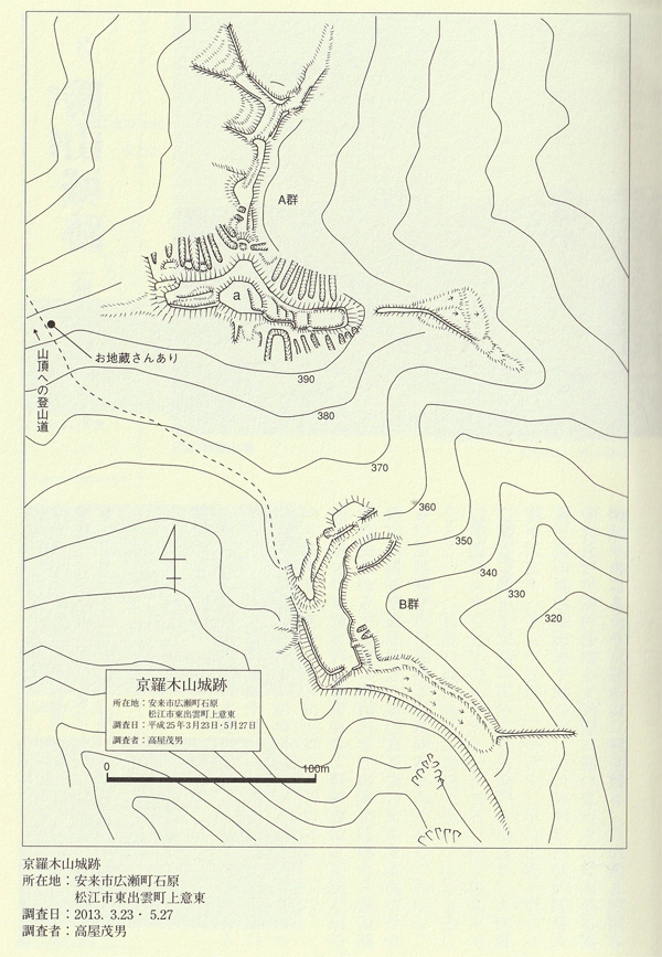 「出雲の山城」(高屋茂男編)に記載された京羅木山城跡の見取図から、
