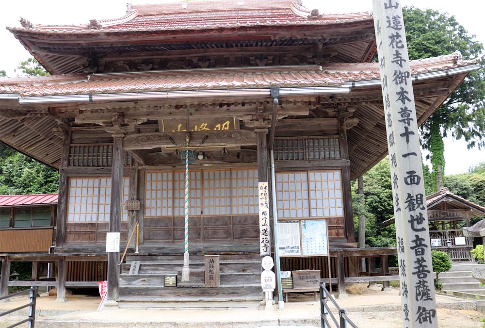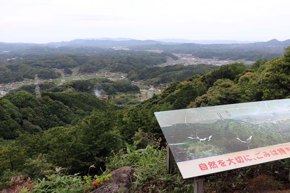 下山後に歩いて蓮花寺に参拝し、くのじ展望台へ登った。大東町と加茂町を見下ろし、先程登った磨石山と奥に三瓶山が見えた。