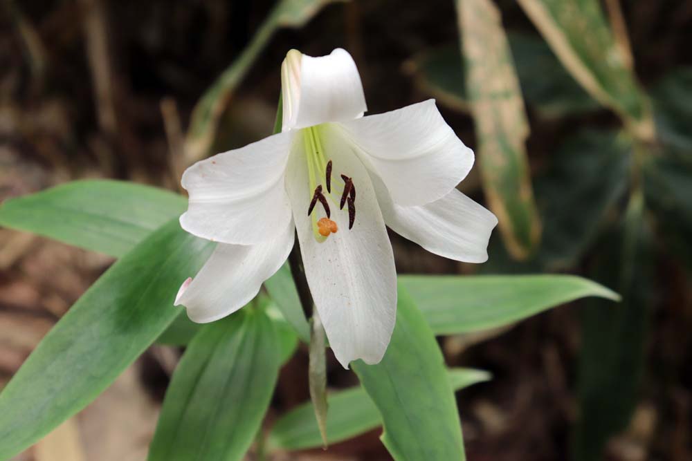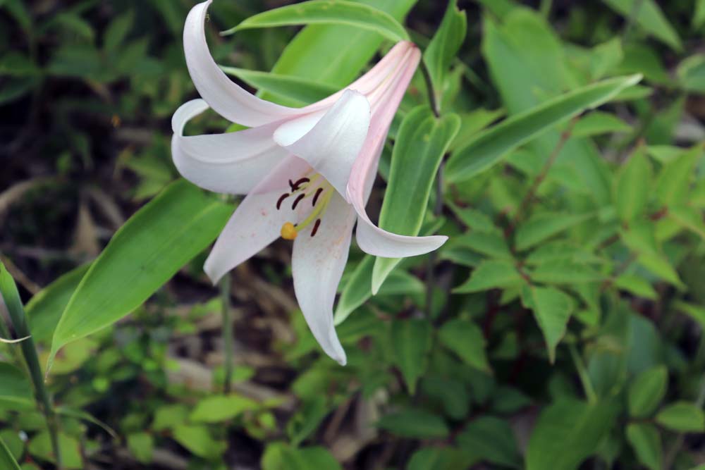 県道から阿用小学校に入り狭い山道を登り登山口へ。今年初めてのササユリを見つけた。