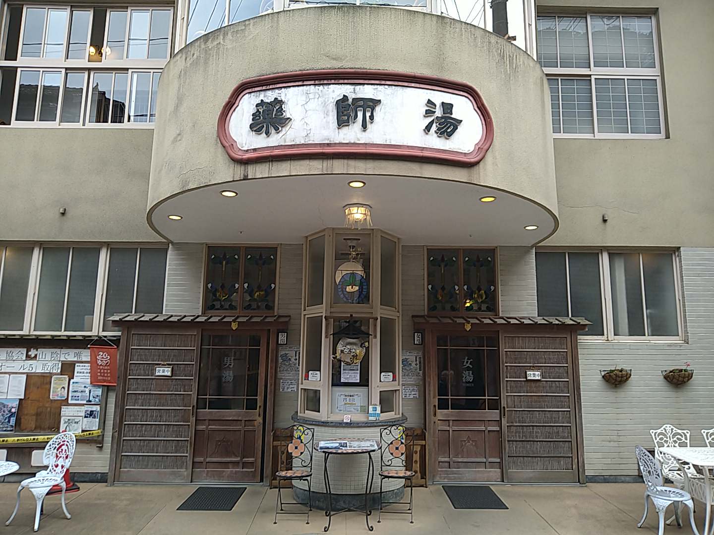 温泉津に帰り薬師湯で温泉に浸かる。成分はナトリウム、カリウム、マグネシウム、いい湯だった