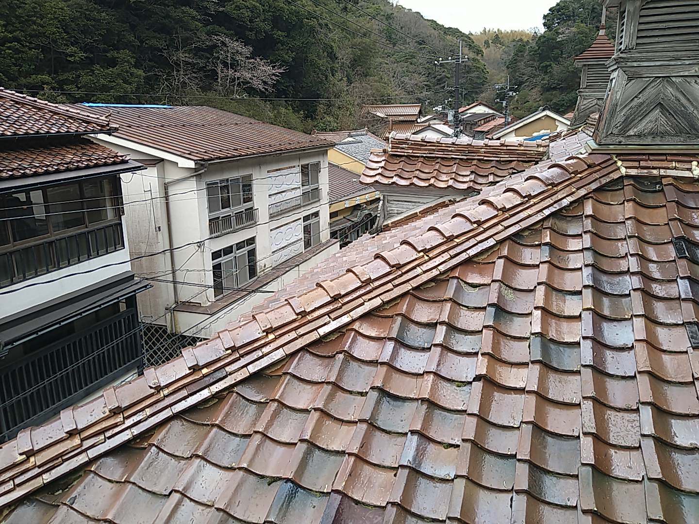 薬師湯屋上から温泉津の街並み。石州瓦が美しい