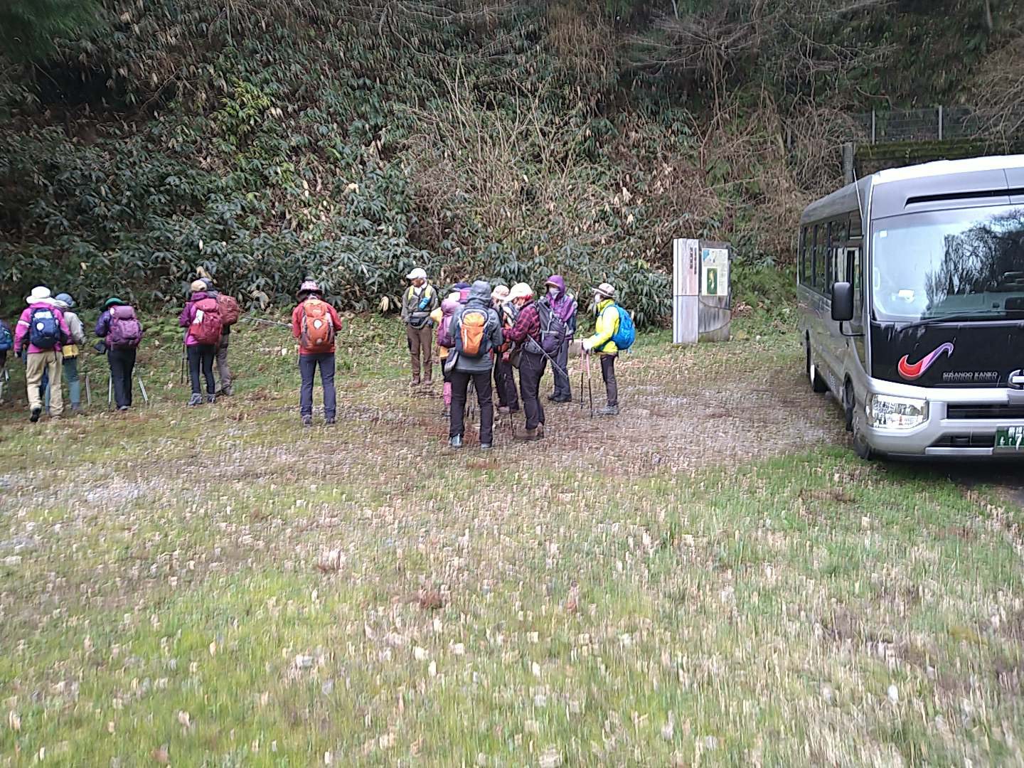 矢滝城山の登山口まで狭い道をバスで入る