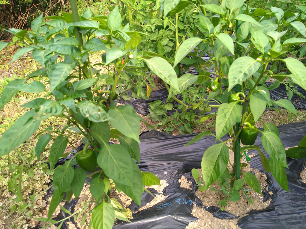 結果:桃太郎と苗木北進は合格。庄屋大長は数少なく身も小さめ、苗木エースピーマンは実が大きくならず小ぶり、変更した方が良い。