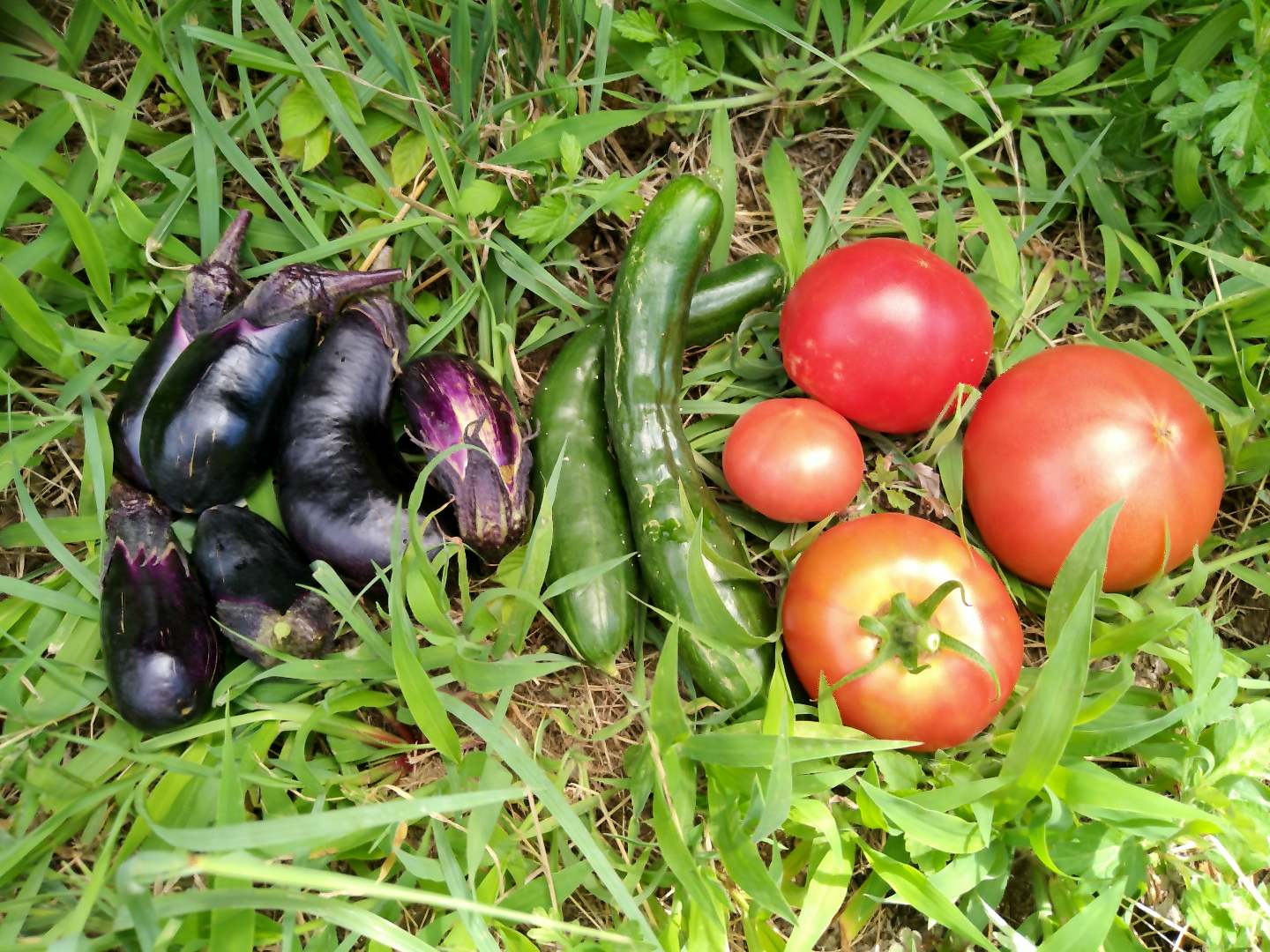 6月10日トマト、ナス、ズッキーニの収穫
