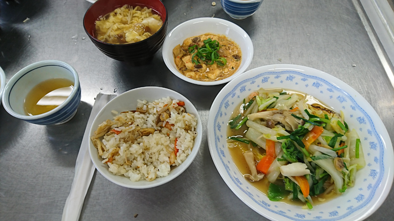 2020年1月のメニューは 1.酒かす入り炊き込みご飯 2.ちゃんこ汁 3.鮭のオーロラソースあえ