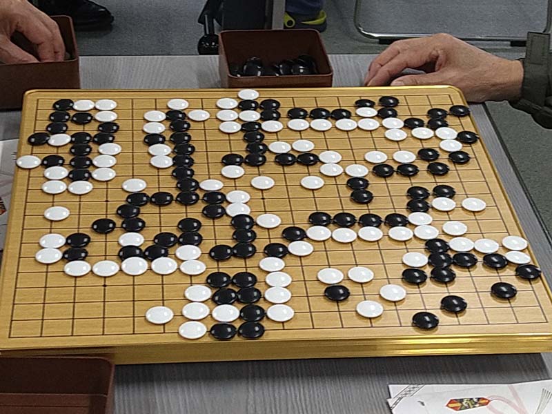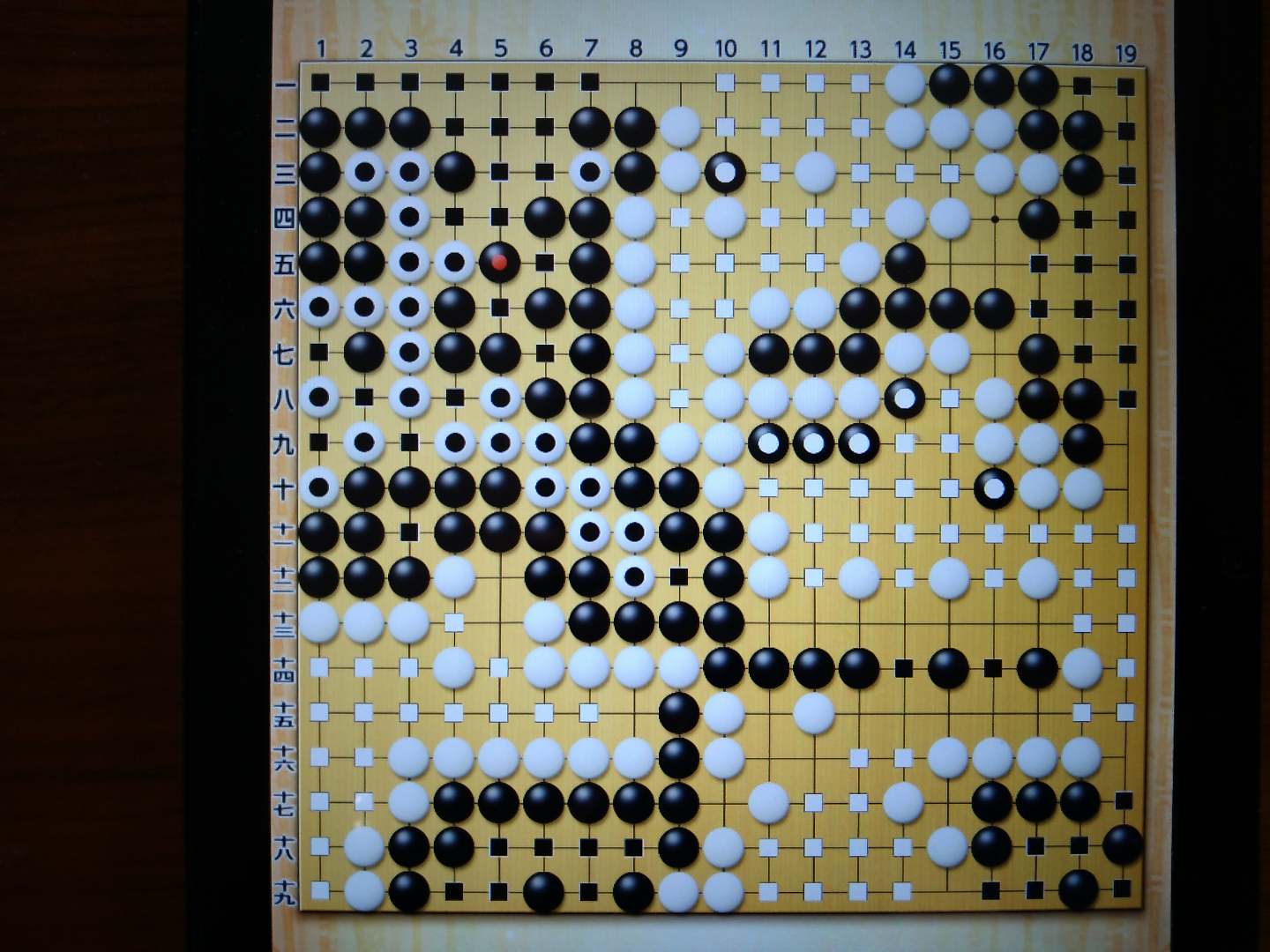 黒で中押し勝ち5目半。左上の白を囲んで目を潰し、右にも食い込んだ。下の2か所に目を作れた