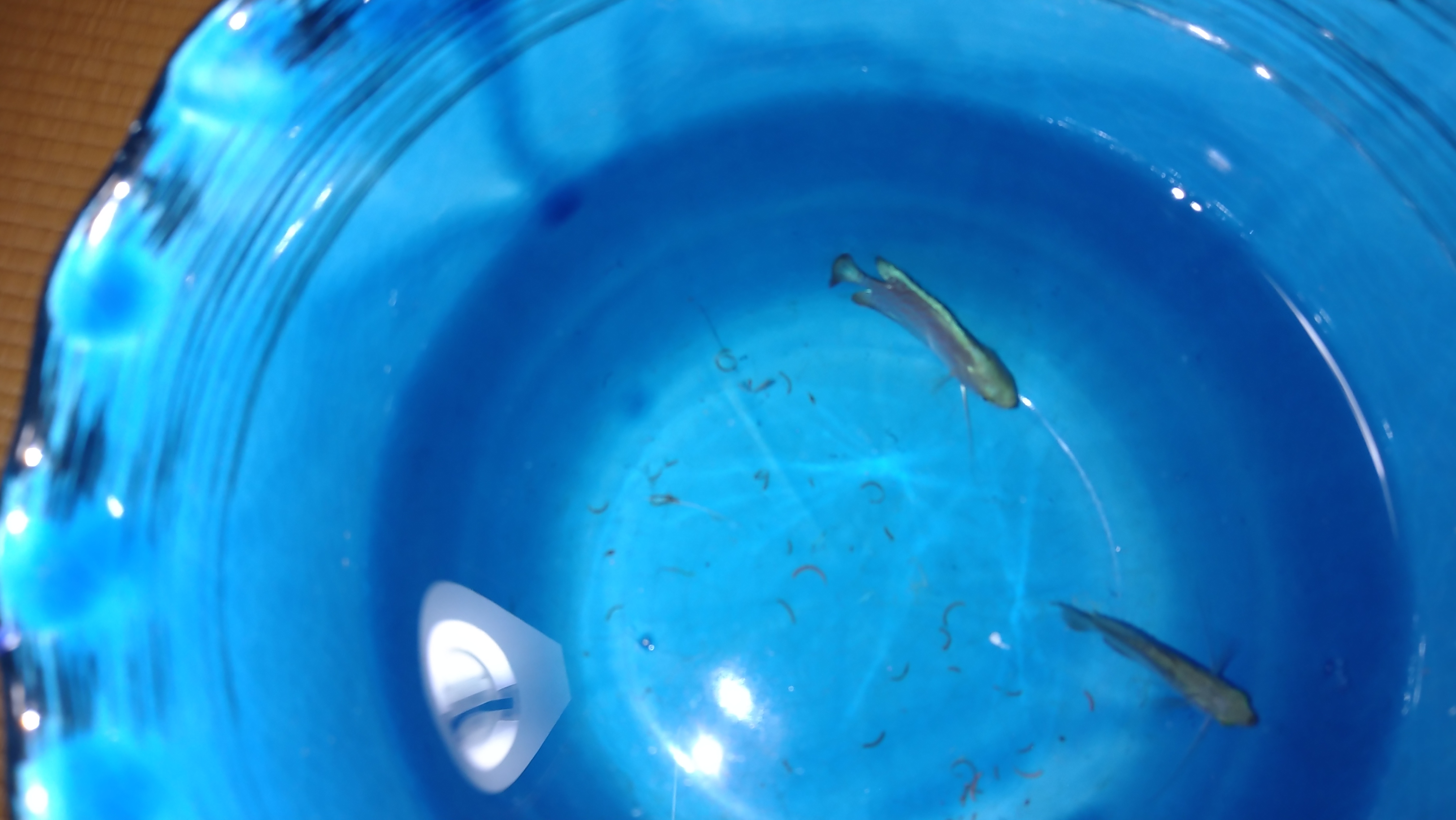 式に必要な生きた川魚、熱帯魚ネオンドワーフの雄と雌を用意。式終了後、近くの大池い放してやった。