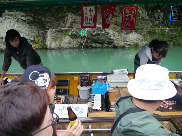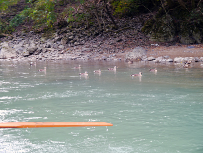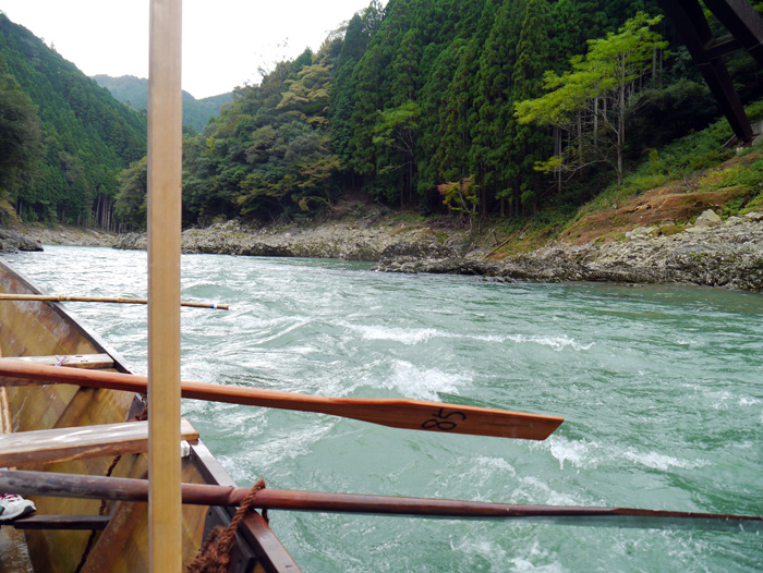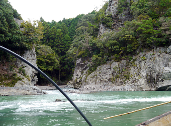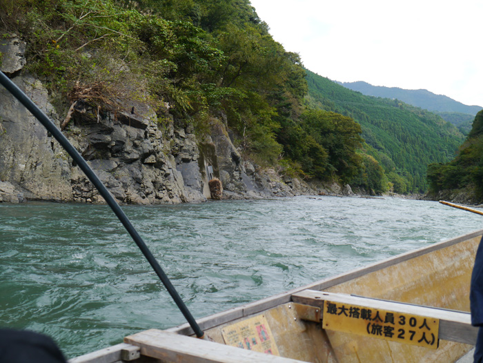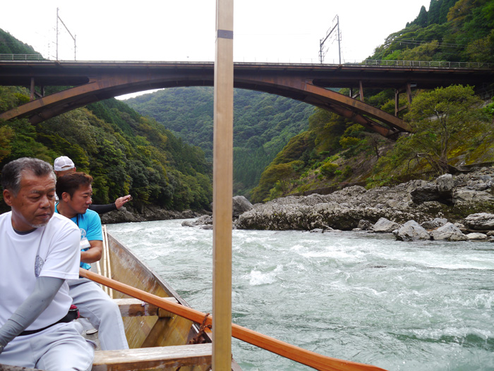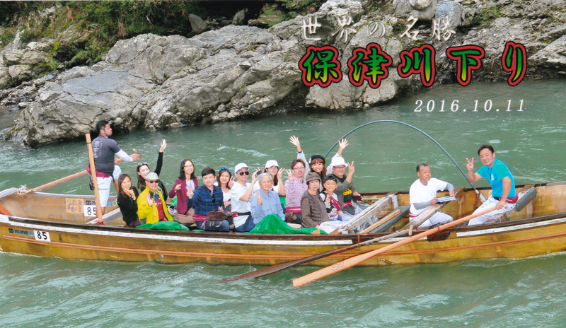 2016年10月11日 尾瀬ツアー登山の帰りに大阪で一泊し、京都観光をした。一度は体験したかった保津川下りの機会を得た。 京都駅から山陰線で亀山駅まで行き船着き場に着いた。ここからすぐ定員の船に乗れた。 船頭の案内を聞きながら出発して1時間40分、激流では水を浴びるスリルある楽しい船旅だった。 終点の渡月橋に近くなるとおだやかな流れに出店の船に立ち寄った。 船から降りて百人一首の小倉山に登り、上から保頭川を見下ろした。最後に渡月橋から余韻を味わった。 嵐山の後は瑞光寺本山の妙心寺にお参りした。